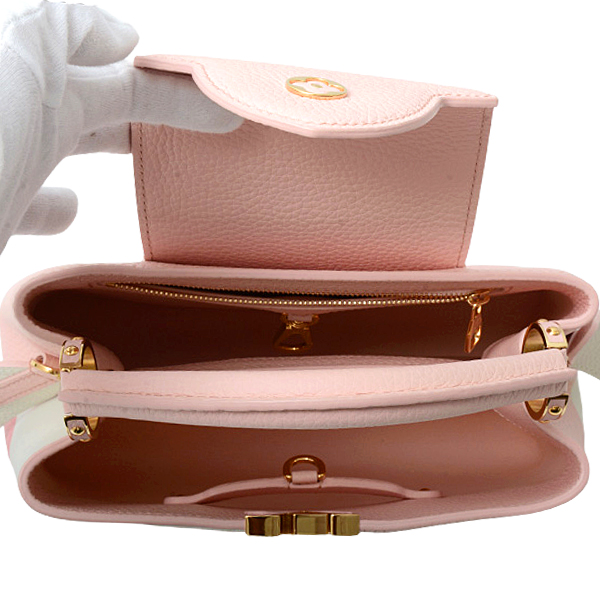 ルイヴィトン バッグ レディース カプシーヌ BB トリヨンレザー 2WAY M59532 Louis Vuitton 未使用展示品 商品番号 75078 商品状態 未使用・未使用展示品 商品状態について 販売価格 ¥ 726,200(税込) ※当店運営の他サイト及び実店舗でも並行販売しておりますので、ご注文お手続き完了後でも売り切れとなっている場合がございます。 只今売切れ中です この商品のお問い合わせ ご注文・お問い合わせは電話でも承ります。商品番号をお控えの上、お電話ください。 ご購入の流れ 配送スケジュール サイズ表記につきまして ラッピング無料! Commentスタッフからのコメント ルイヴィトンからトリヨンレザーで仕立てた「カプシーヌ BB」のご紹介です。 モノグラム ジャイアント フラワーの半分が表面、裏面それぞれに描かれたデザイン、トリヨンレザーとスムースレザーが組み合わさり立体感と豊質感が素敵な逸品です。 ◇取り外し可能なストラップが付いており、2WAYでご使用いただけます。 ◇中央に仕切りがございます。 ダメージについて ◆金具、底ビスに小傷がございます。 ◇ 真贋判定済の本物であることを保証致します。 ◇ その他ご不明な点等ございましたらお気軽にお問合せください。 Spec商品スペック 商品名 ルイヴィトン バッグ レディース カプシーヌ BB トリヨンレザー 2WAY M59532 Louis Vuitton 未使用展示品 商品番号 75078 型番 M59532 商品状態 未使用・未使用展示品 ブランド ルイヴィトン タイプ レディース シリアルIC ライン 素材トリヨンレザー 重さ900g 付属品箱 保存用袋 お支払制限クレジットカード使用可 メンテナンス情報 仕様マグネットボタン付フラップ開閉式:メイン収納×2、内側ファスナー式ポケット×1 サイズ横27cm×縦18cm×マチ9cm ショルダー/ハンドル長さショルダーストラップ:54cm(取り外し可能) 製造国/製造年フランス カラーピンク 備考1 備考2