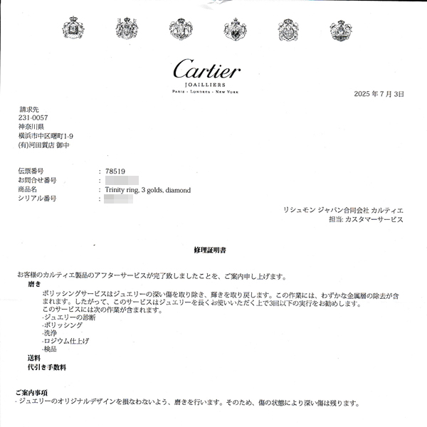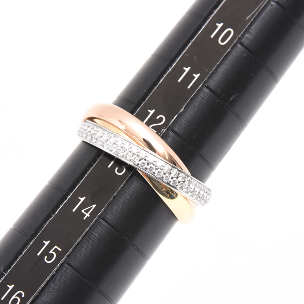 カルティエ 指輪 レディース トリニティSM パヴェダイヤモンド リング 52号 ゴールド Cartier 750YG×WG×PG 中古 商品番号 78519 商品状態 中古A級品 商品状態について 販売価格 ¥ 440,500(税込) ※当店運営の他サイト及び実店舗でも並行販売しておりますので、ご注文お手続き完了後でも売り切れとなっている場合がございます。 只今売切れ中です この商品のお問い合わせ ご注文・お問い合わせは電話でも承ります。商品番号をお控えの上、お電話ください。 ご購入の流れ 配送スケジュール サイズ表記につきまして ラッピング無料! Commentスタッフからのコメント ☆ カルティエ 750YG×WG×PG トリニティSM パヴェダイヤモンド リングのご紹介です。 ☆ カルティエの定番人気「トリニティ」のリングになります。 ☆ 3つのリングが連なった上品でおしゃれなリングです。 ☆ ホワイトゴールドリングの表面には大変良質で輝きのあるダイヤモンドが1周にセッティングされた豪華な逸品です。 ☆ サイズは表記サイズ52号、実寸日本サイズ12.5号程度となっております。 ☆ カルティエにてポリッシュを行っておりますので大変綺麗で良好なコンディションとなっております。 ☆ 付属品としてカルティエ発行修理明細書がございます。 ◆ ポリッシュでは取り切れない薄傷がございますが気にならない程度です。 ◆ 金性刻印(750刻印)が消えており、刻印が薄くなっている箇所がございます。 ◆ 修理明細書以外の付属品はございませんので当店で用意したケースにお入れいたします。 ご不明点はお気軽にお問い合わせください。 Spec商品スペック 商品名 カルティエ 指輪 レディース トリニティSM パヴェダイヤモンド リング 52号 ゴールド Cartier 750YG×WG×PG 中古 商品番号 78519 型番 商品状態 中古A級品 ブランド カルティエ タイプ レディース シリアルR----- 素材750YG×WG×PG 重さ5.3g 付属品カルティエ発行修理明細書 お支払制限クレジットカード使用可 メンテナンス情報カルティエにてポリッシュ 仕様ダイヤモンド サイズ表記サイズ52号 実寸日本サイズ12.5号ほど リング幅1本2.6mm~2.8mm サイズ変更不可 備考1中古A級品になります。 備考2カルティエにてポリッシュ済みになります。